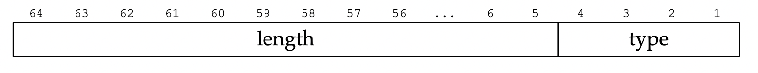 For primitive values, we need to indicate their type and length. Therefore, we divide the value encoding into two columns: